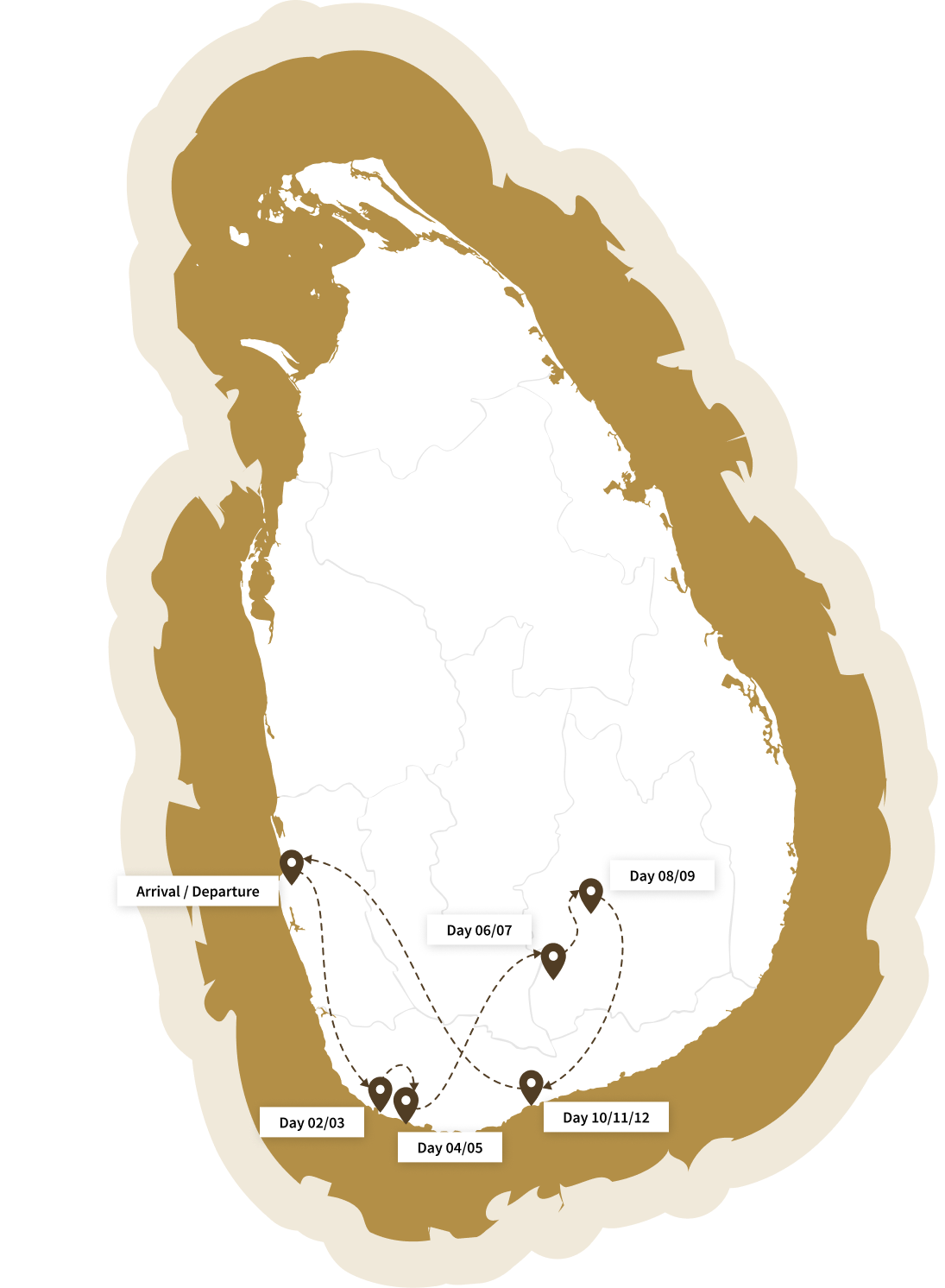 Arrive at Bandaranaike International Airport and settle into Galle Face Hotel. Explore Colombo’s heritage sites, including Gangaramaya Temple and Pettah Market.